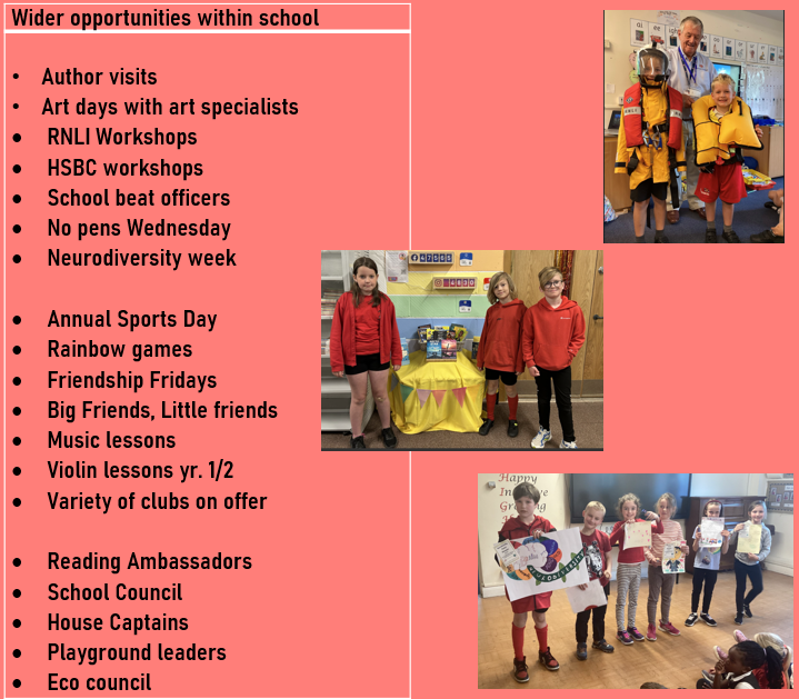 Children also engage with the values through the curriculum, in ways that are suitable for their age and context. For example, in some subjects there are opportunities to think about traditions from different cultures and religions. Extra-curricular activities such as games teach children about the importance of rules. Pupil votes, questionnaires and school council/leadership roles are other ways that your children can have their voices heard and learn about democracy.