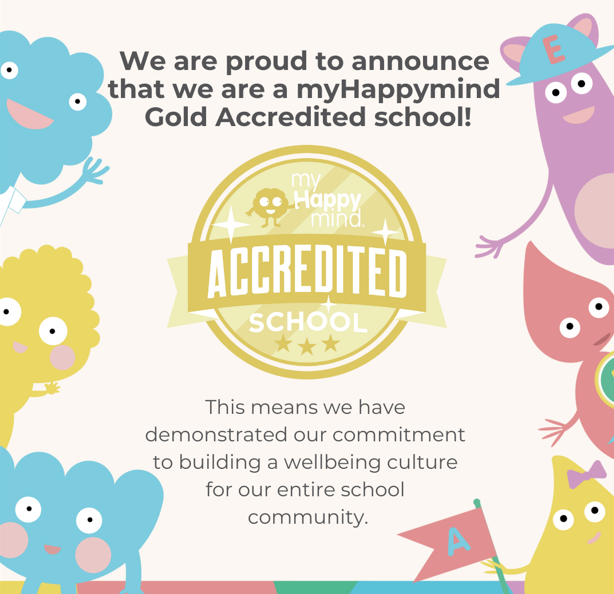 We are proud to announce that we are a myHappymind Gold Accredited school!